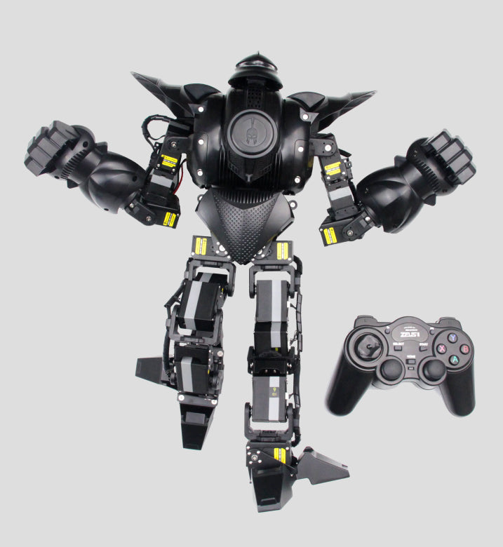 Moorebot Zeus Hight: 45 cm (17.7 inches) Weight: 2.3 kg Movement Dimensions: 22 Motors: Made in Japan, 25 kg torque Battery: 2 X 2500 mAh lithium battery Armor: 30 armor parts which allows user to design and to 3D print their own cool armors.