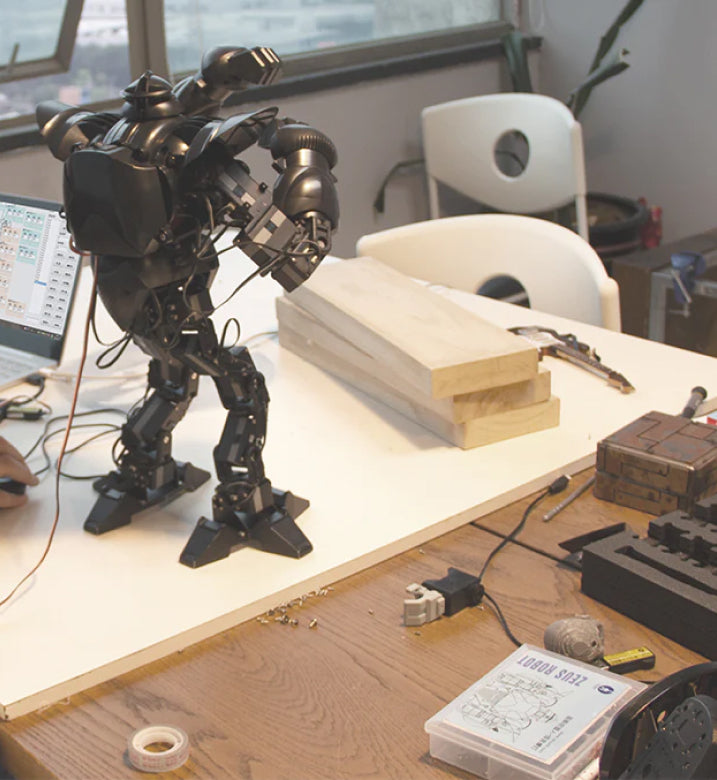 The product comes with many standard movements, with additional graphical programming tools for users to customize more movements. From boxing, to Kongfu, to Taekwando, to Karate, unleashing imagina-tion is in the palm of your hand. Mechanical design files are available for users who want to customize the robot armor with 3D printing. The robot is dustproof. With Moorebot Zeus, robots fight to a new level!